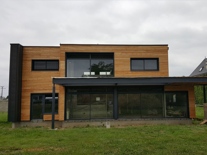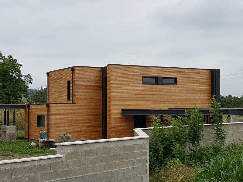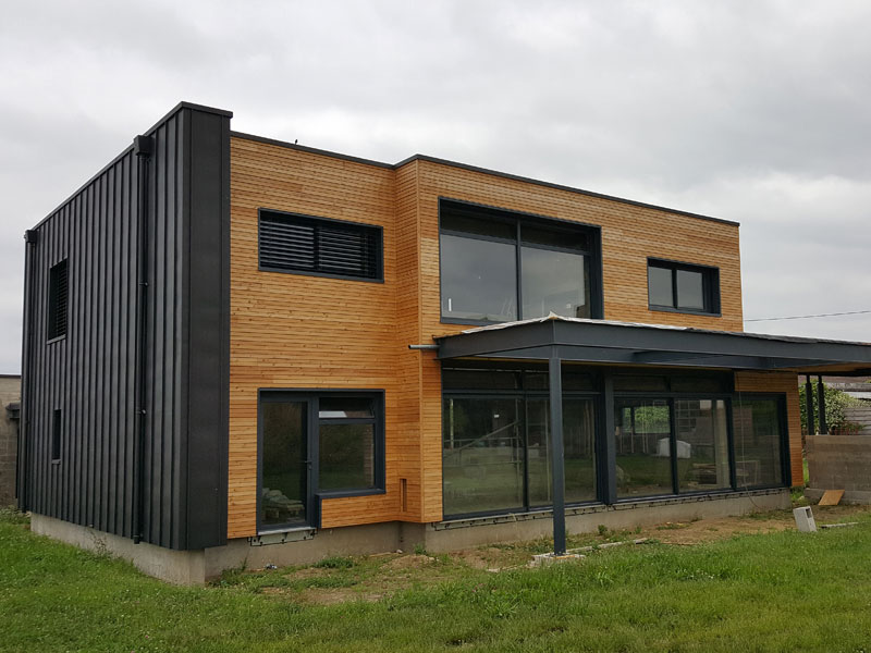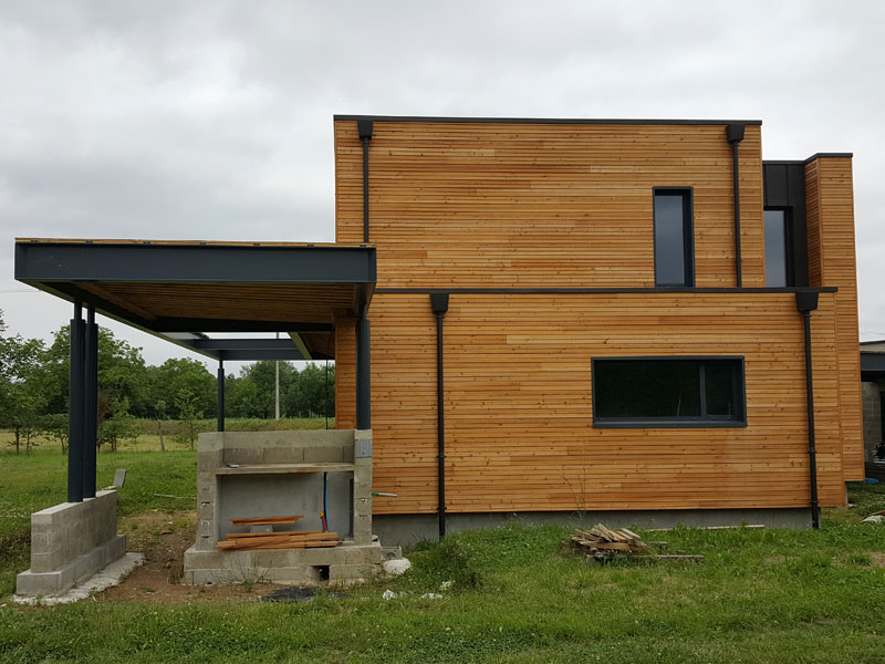 Construction maison individuelle en ossature bois isolé par l’extérieur + bardage mélez