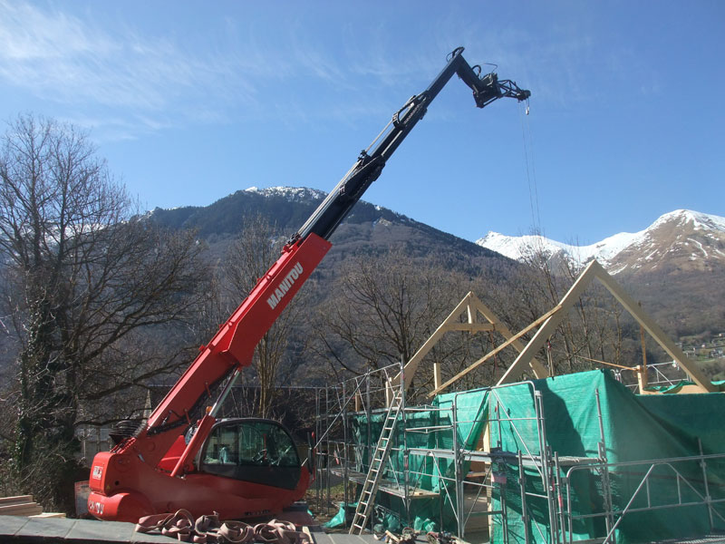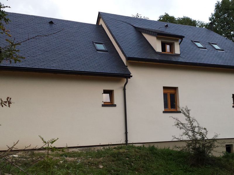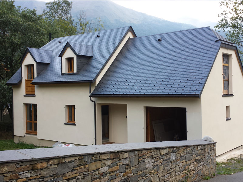 CONSTRUCTION D’UNE MAISON OSSATURE BOIS, isolation fibre de bois en toiture et en mur + enduit sur fibre de bois + charpente traditionelle à Esquièze-Sère (65)