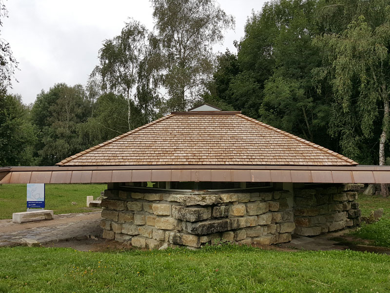 Couverture en bardeau bois Sanitaire aire des Pyrénées ASF à Ger (64) 2017